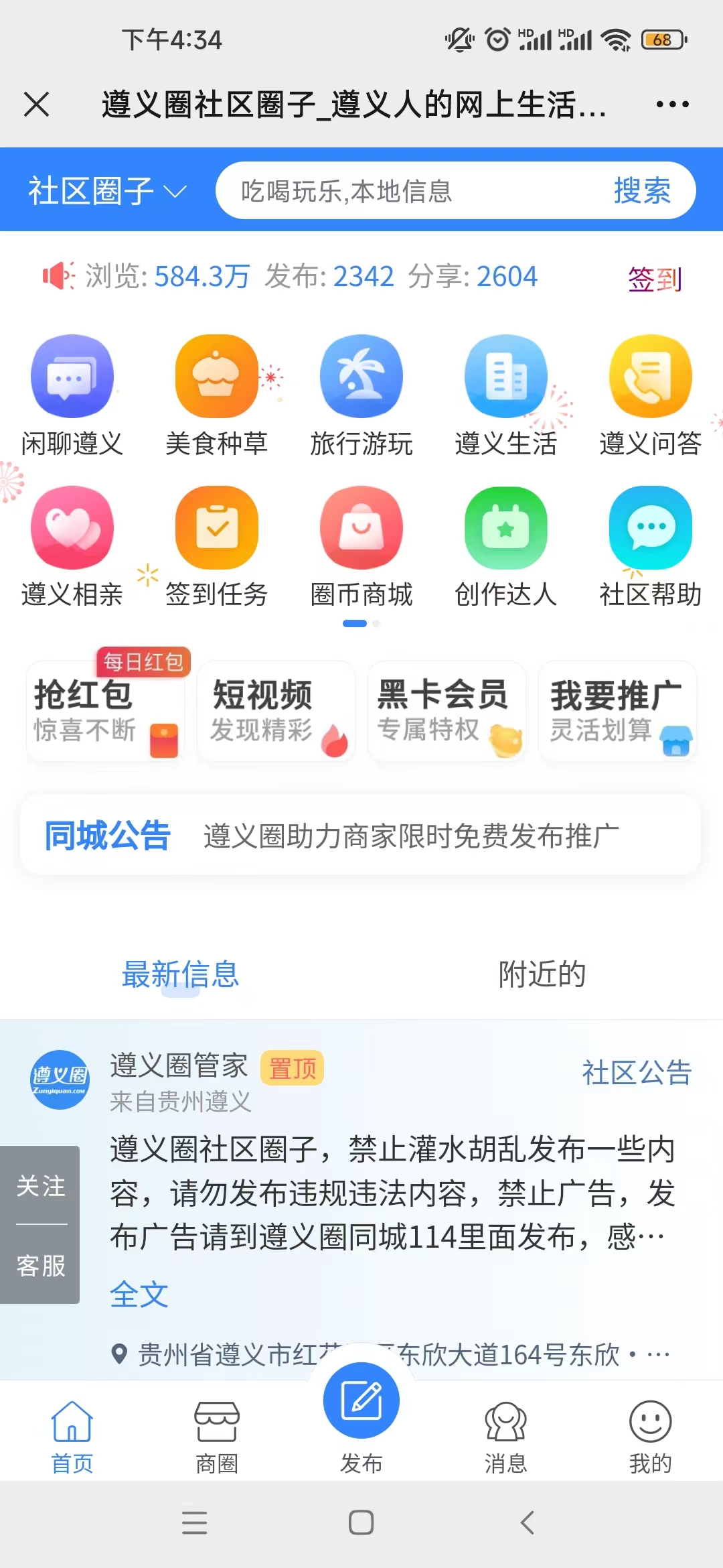 3、圈子分站信息不再总站显示,总站作为同城分类,设置引导圈子社区的链接。