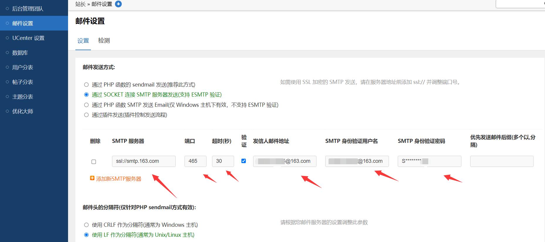 看下图就行,记得SMTP服务器位置前面加ssl://