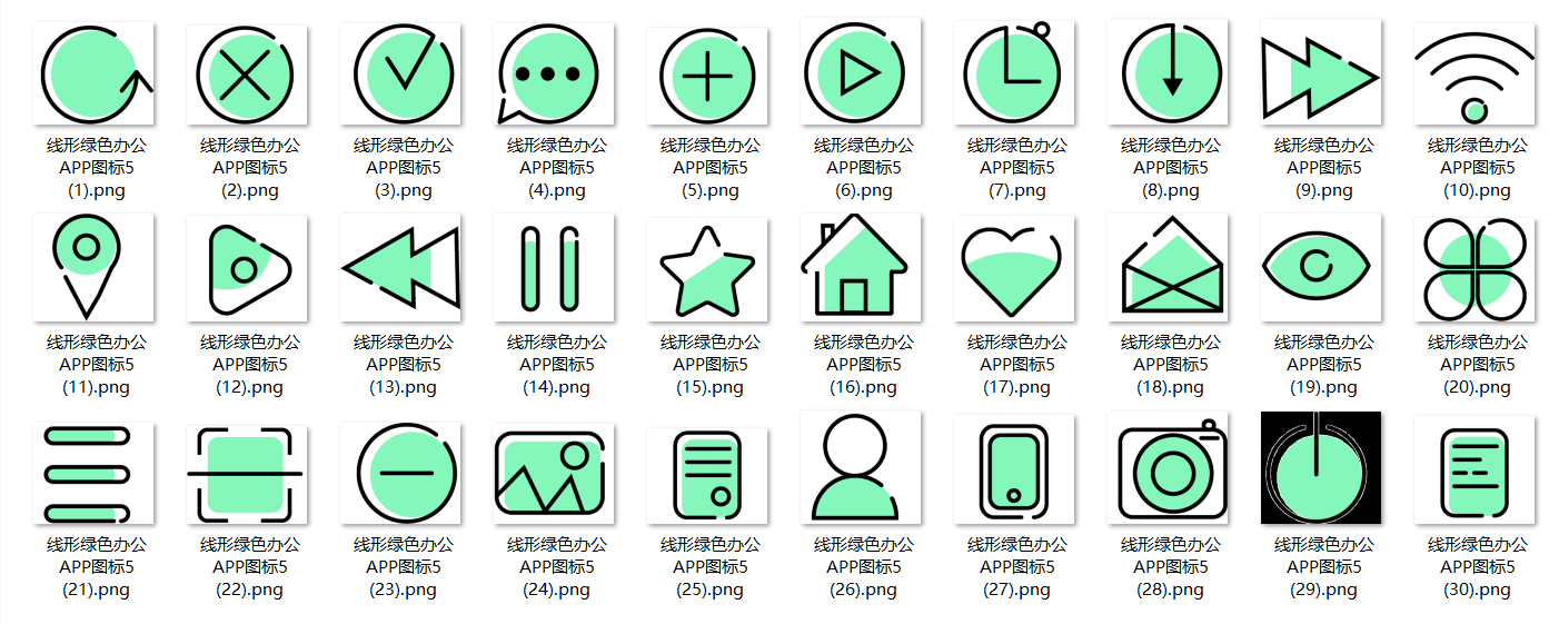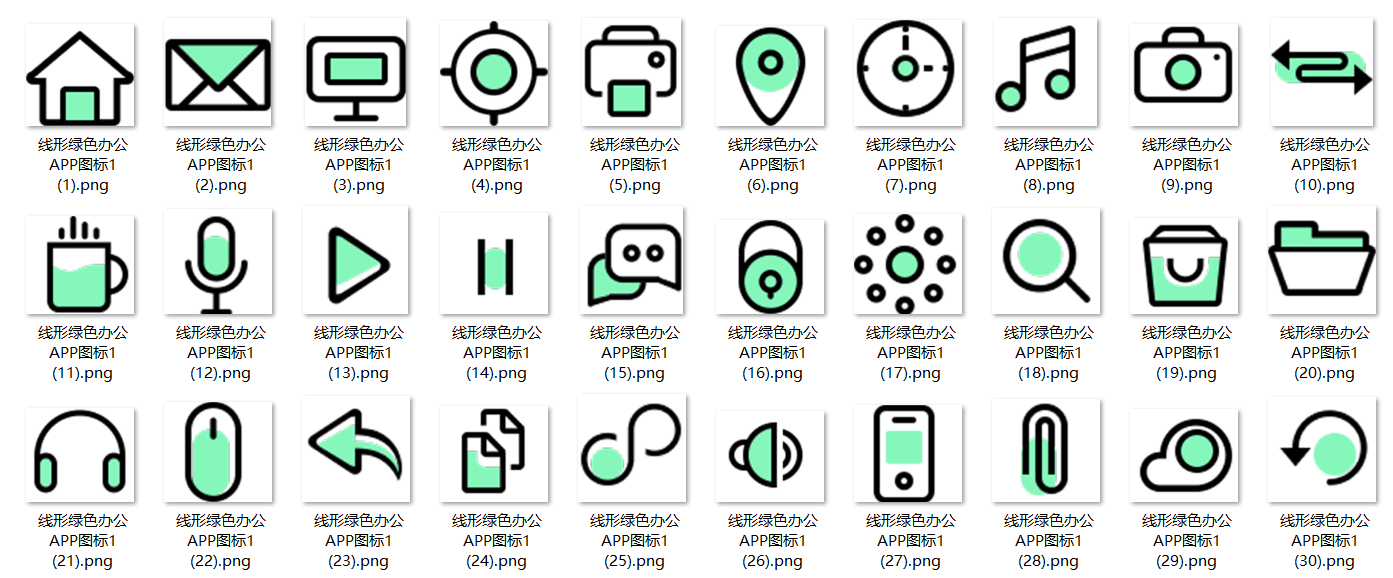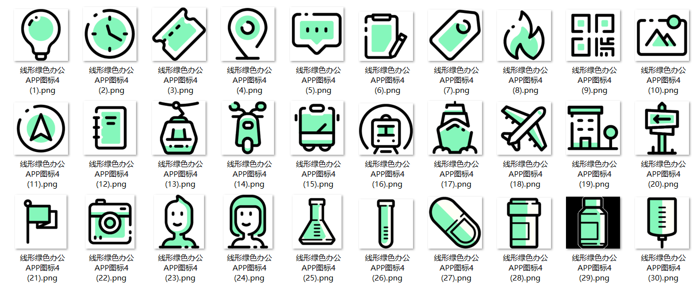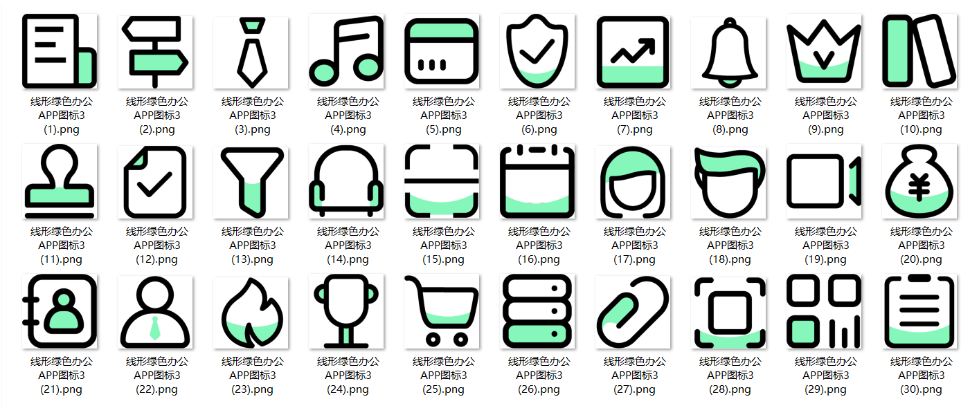 150款线形绿色办公APP图标,免抠图,PSD源文件